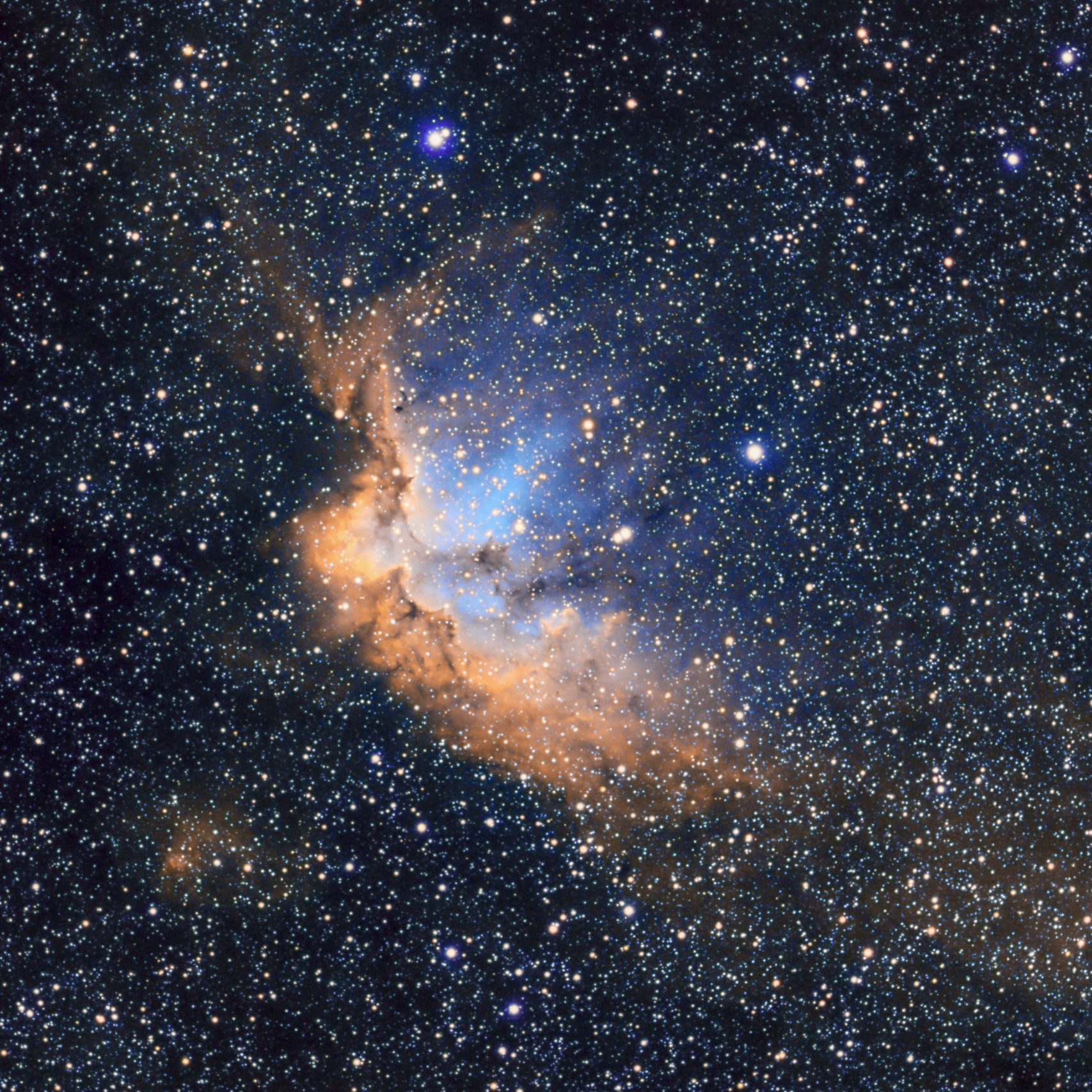 M17, également connue sous les noms de nébuleuse Oméga, du Cygne, du Fer à Cheval ou du Homard, est une nébuleuse en émission située à environ 5 500 années-lumière de la Terre dans la constellation du Sagittaire et a un diamètre de 15 années-lumière.