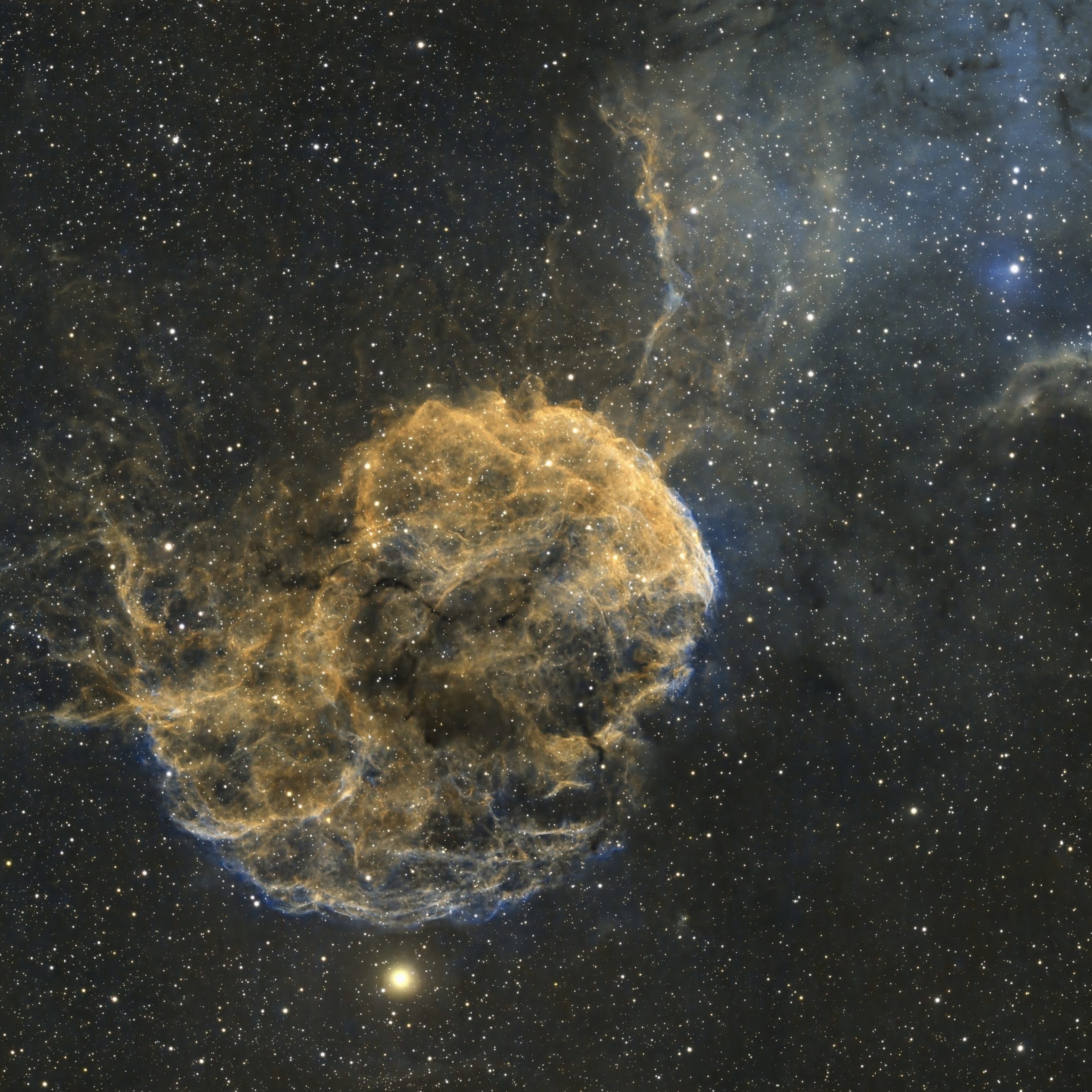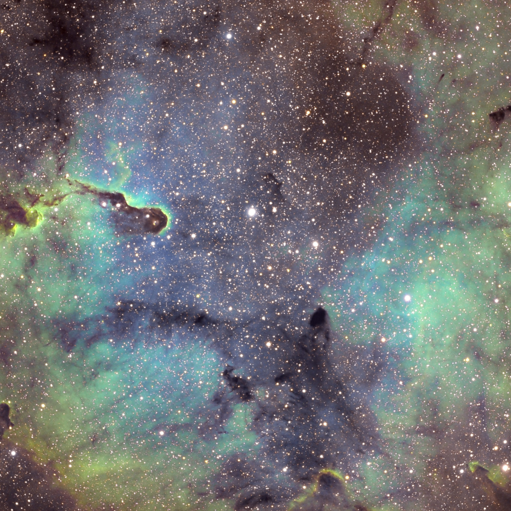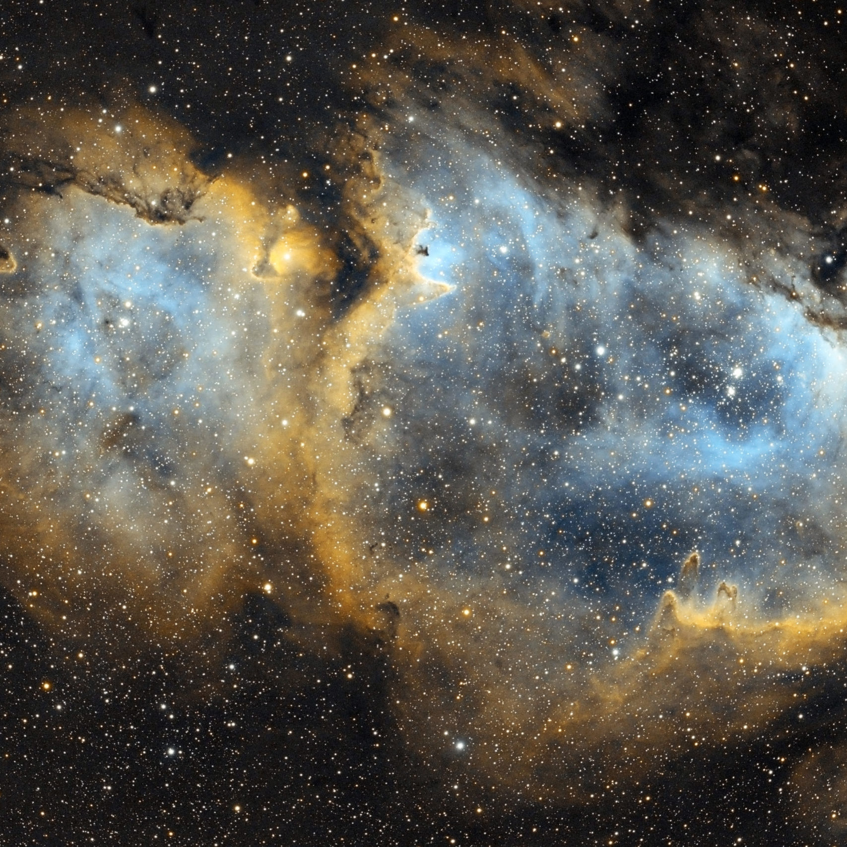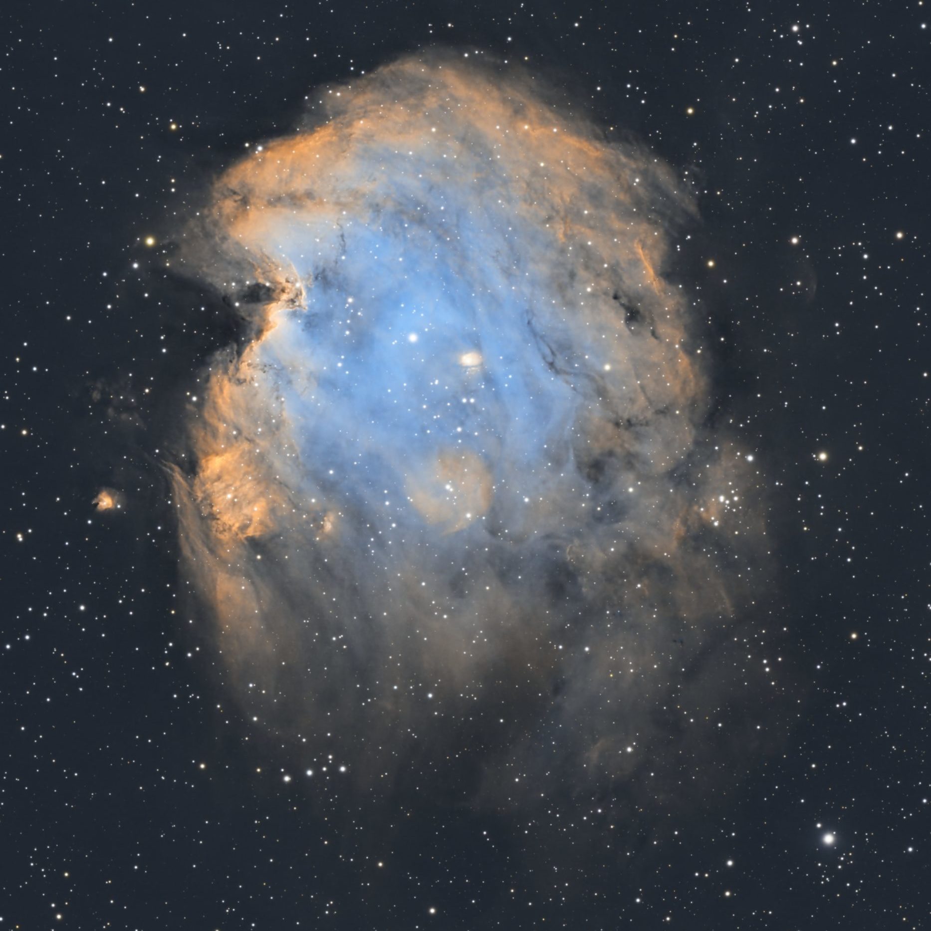 Elle doit sa luminosité à des étoiles jeunes de type B qui irradient le gaz alentour, créant ainsi une région HII. La couleur rouge de la nébuleuse est d’ailleurs celle de l’hydrogène ionisé.